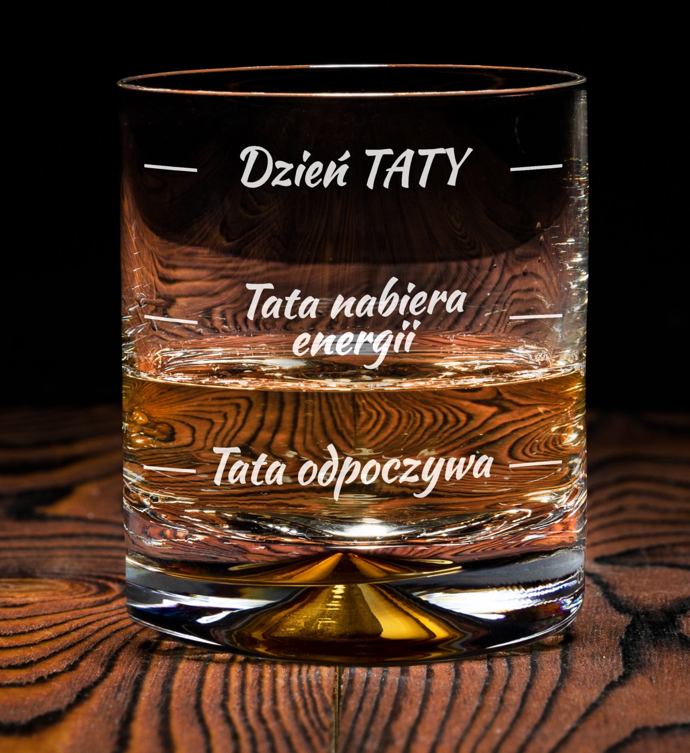 W skład zestawu wchodzi elegancka szklanka do whisky o pojemności 300 ml oraz etui z napisem „Najlepszy Tata na świecie”.